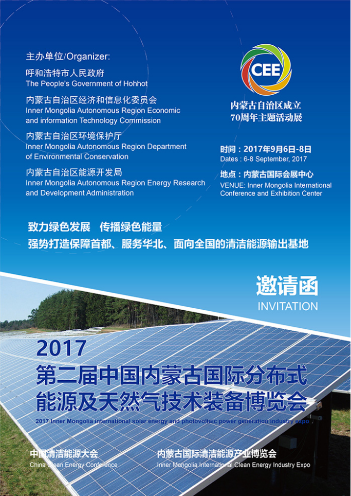 我们诚挚邀请并热情期待所有同仁积极组织参加本届博览会,我们相信这一清洁能源盛会定会给您带来更多的商业契机。2017第二届内蒙古国际分布式能源及天然气技术装备博览会——期待与您共襄盛举!