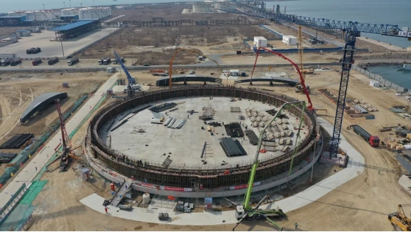 3月22日凌晨,随着最后一方混凝土浇筑完成,在历经11小时40分,累计浇筑方量983立方米后,中交营口LNG接收站项目1号储罐外罐第一层墙体顺利完成浇筑,标志着中交营口LNG接收站项目储罐建设进入了新的阶段,由平面施工正式转为竖向立体施工,为实现储罐气顶升目标奠定了坚实基础。