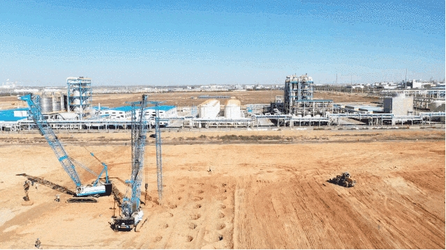 LNG项目强夯工程总面积为10.74万平方米。目前,煤制油化工指挥部已完成50%工程量,完成了施工区详细勘察、地面清表、场平工程等作业。下一步,煤制油化工指挥部将加快推进强夯作业及其检测工作,为后续工程设计和施工提供坚实的保障。