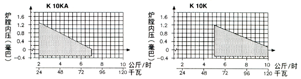 | · 燃烧机的耗油量和输出范围受炉膛内压影响,请参看下面的[炉膛内压/输出功率图表]。 | |||||||||||||||||||||