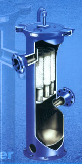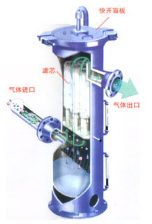 为除去超细微液滴,聚结器使用具有两种功能的高效聚型滤芯:首先必须凝聚超细微的液滴,然后滤芯必须通过它的网络排出凝聚的液体。气体流向从滤芯内部向外部,通过滤芯后液体被聚结并分离出来,同时液体在重力作用下通过滤芯网络排出。