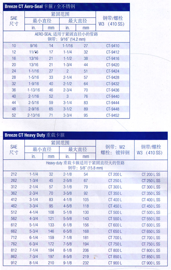 Breeze带持续紧固力的CT卡箍是对紧固技术的一个突破。贝式弹簧的机械力使卡箍在不断变化的温度环境中能够自动调节大小。